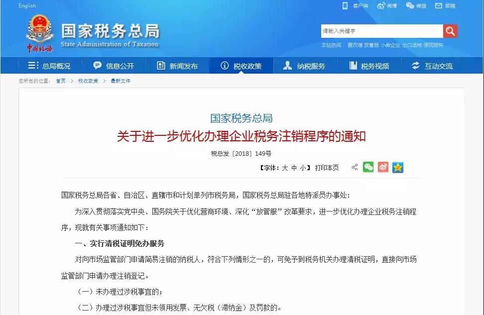 為深入貫徹落實(shí)黨中央、國(guó)務(wù)院關(guān)于優(yōu)化營(yíng)商環(huán)境、深化“放管服”改革要求,進(jìn)一步優(yōu)化辦理企業(yè)稅務(wù)注銷(xiāo)程序,現(xiàn)就有關(guān)事項(xiàng)通知如下: